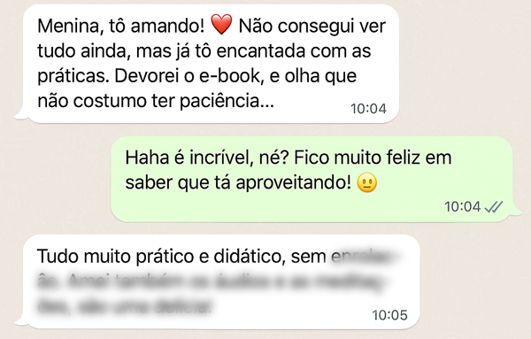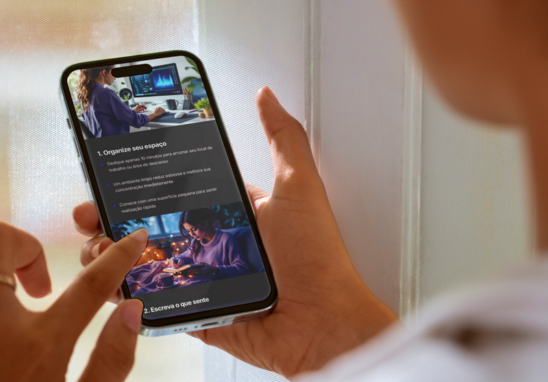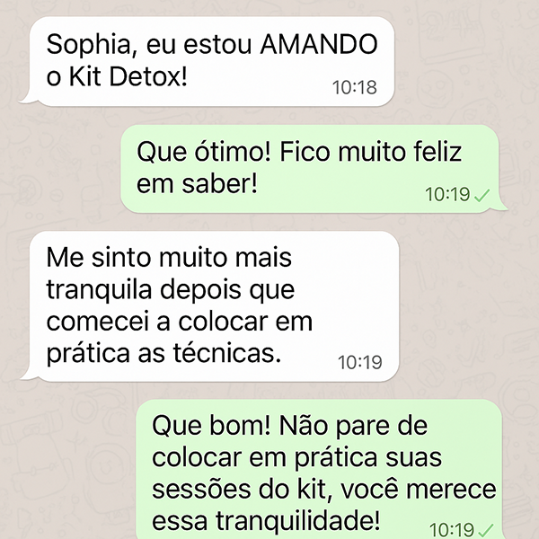Descubra como 50 técnicas simples e eficazes podem transformar seu dia a dia, aliviando o estresse e reconectando você com sua essência. Milhares de mulheres já resgataram sua paz interior com o Kit Detox da Mente Cansada!